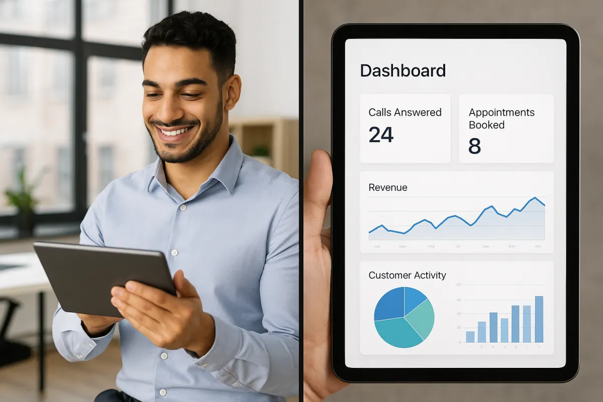 - AI Voice Receptionist handles calls 24/7- or customized on your schedule.
